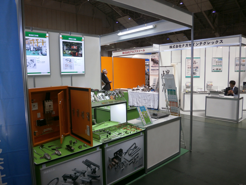 切削品・銅帯加工品・蝶番等の別作加工のご紹介、ハンドル・支柱等を分電盤に配置したモデルで使用方法のご説明などを実施し、今後の製品開発における貴重なお客様の声をお聞きしました。